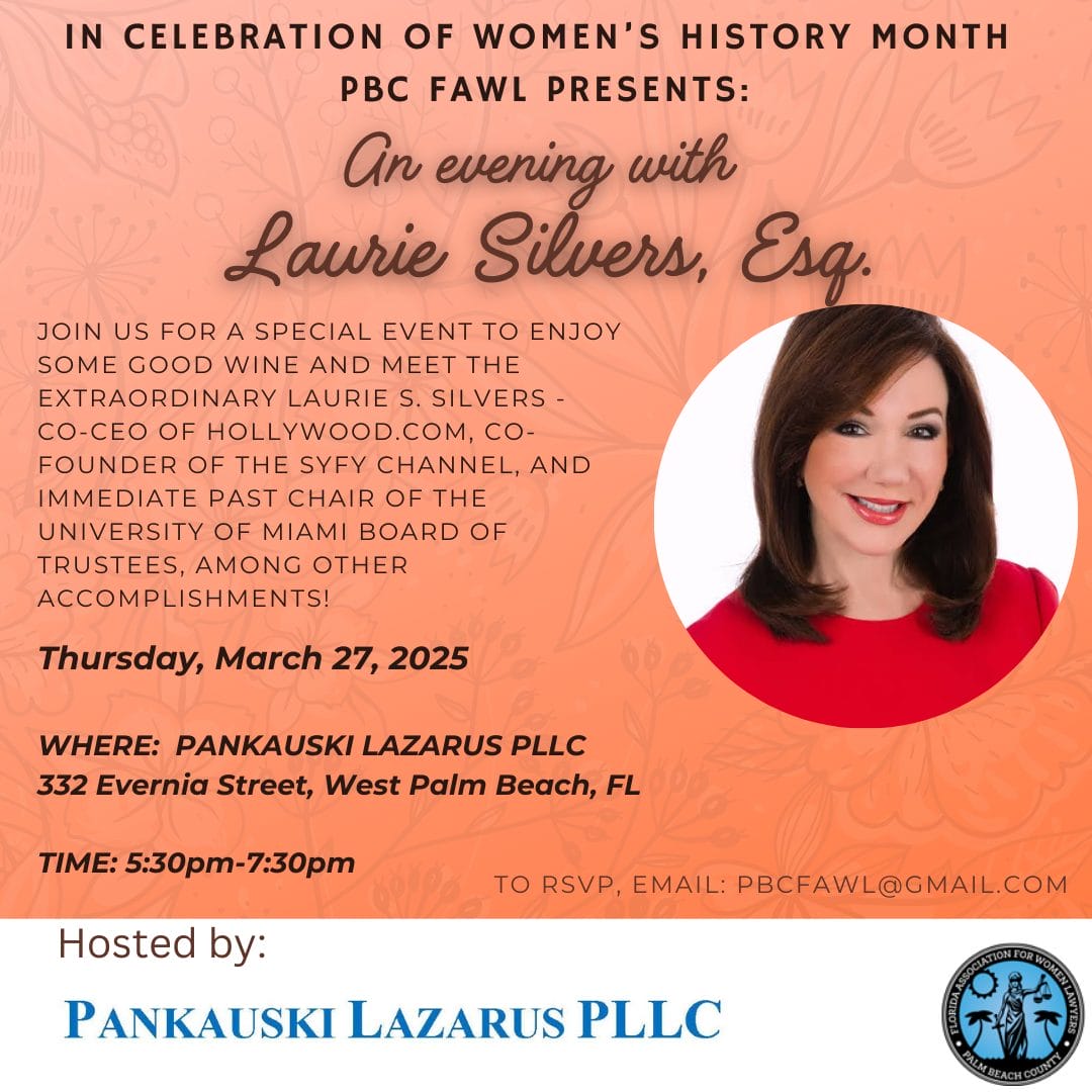 IN CELEBRATION OF WOMEN’S HISTORY MONTH PBC FAWL PRESENTS: An evening with Laurie Silvers, Esq..